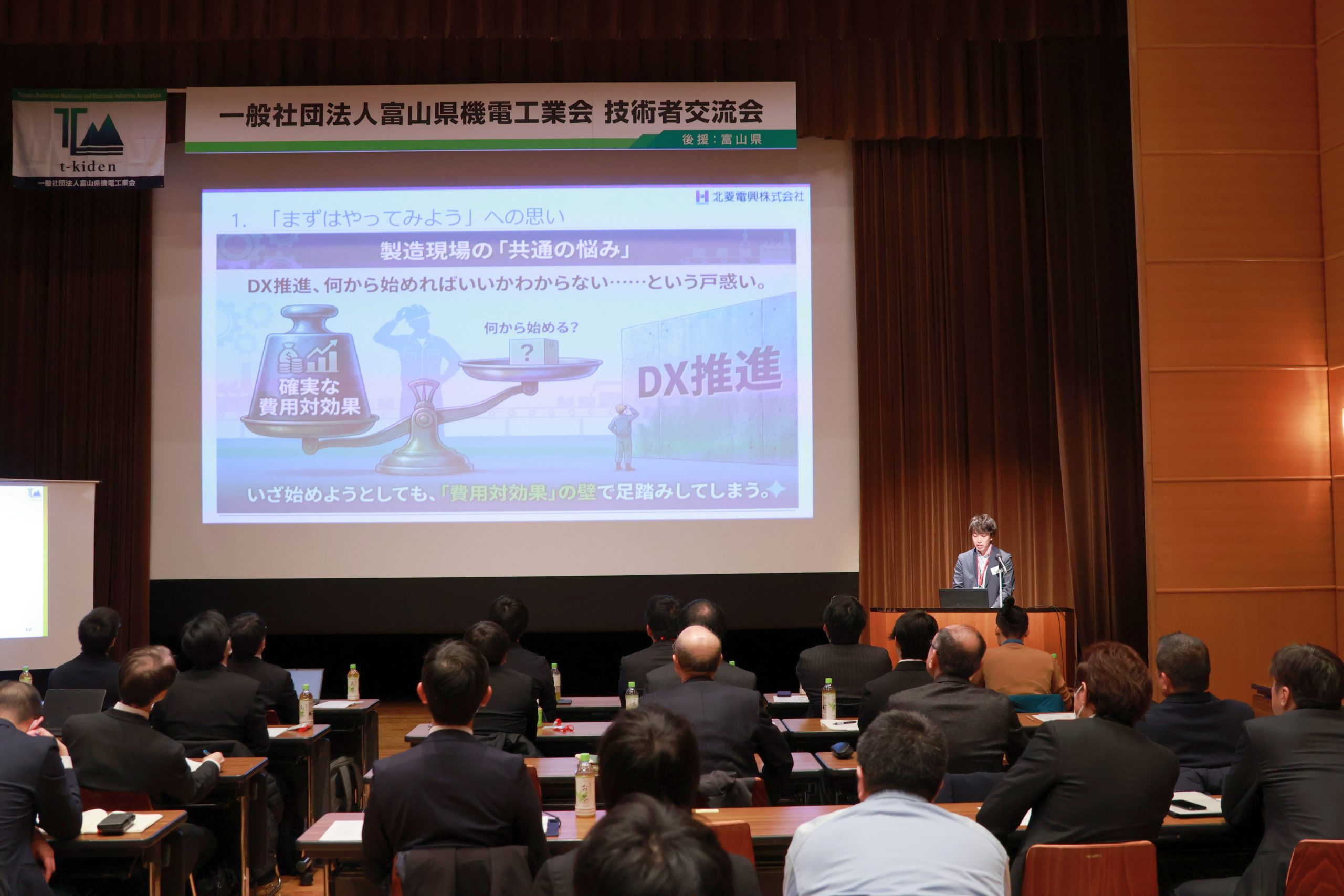 富山県機電工業会主催 技術者交流会に富山支店 電機部 森田遼平が登壇しました