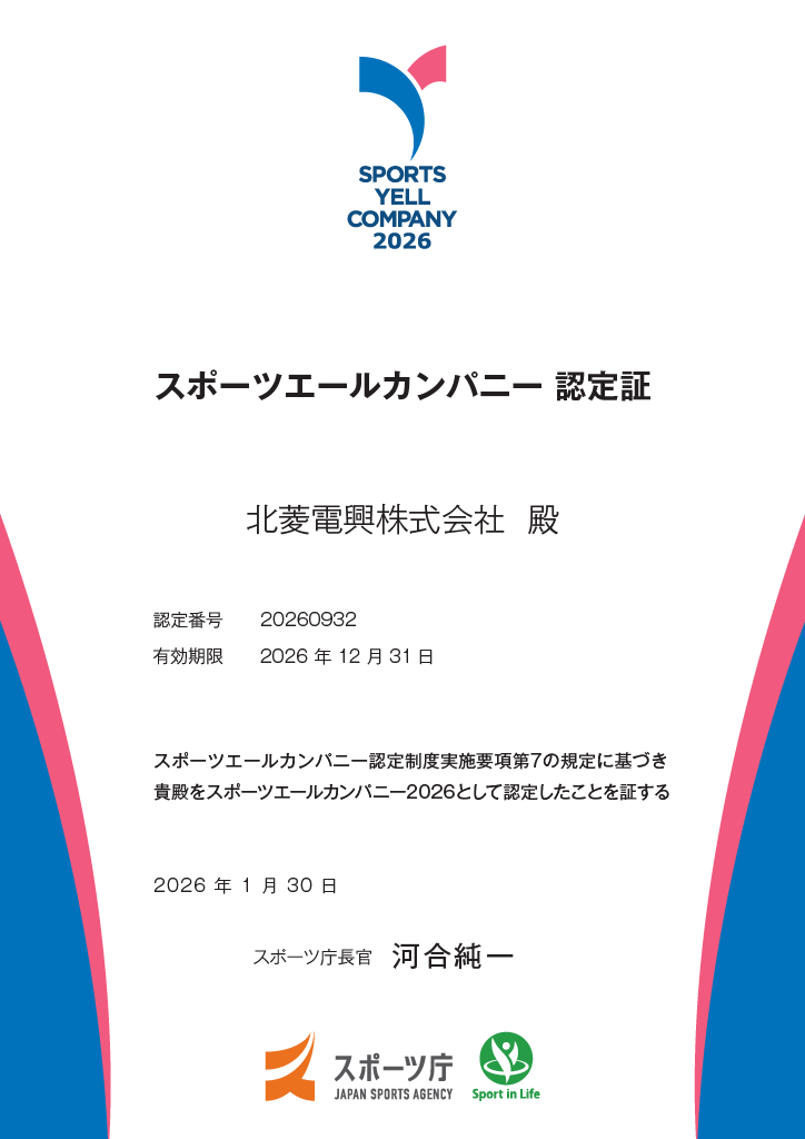 当社はこのたび、スポーツ庁より「スポーツエールカンパニー2026」に認定されました。
